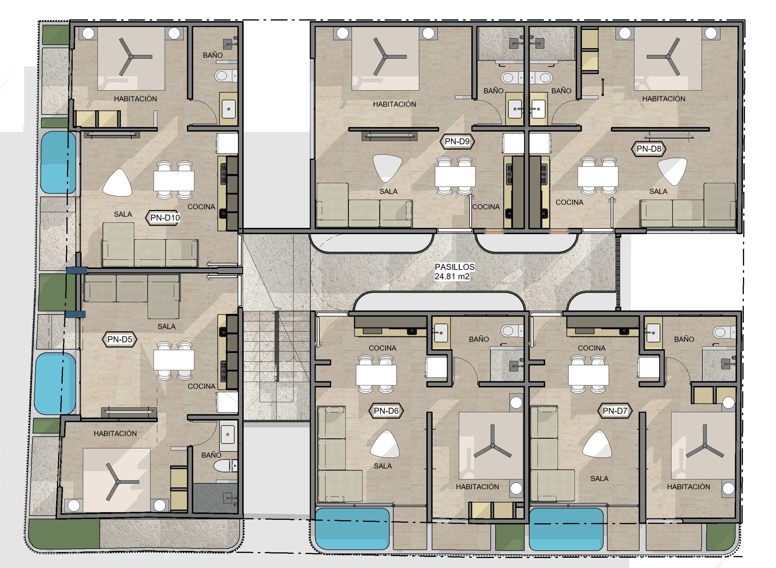 Unidad 8 – 40.25 m² – 1 recámara – 1 baño – VENDIDO